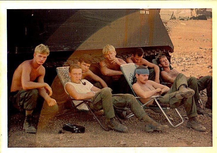 Her ses nogle medlemmer af China Beach Surf Club slappe af under en varm dag på stranden.